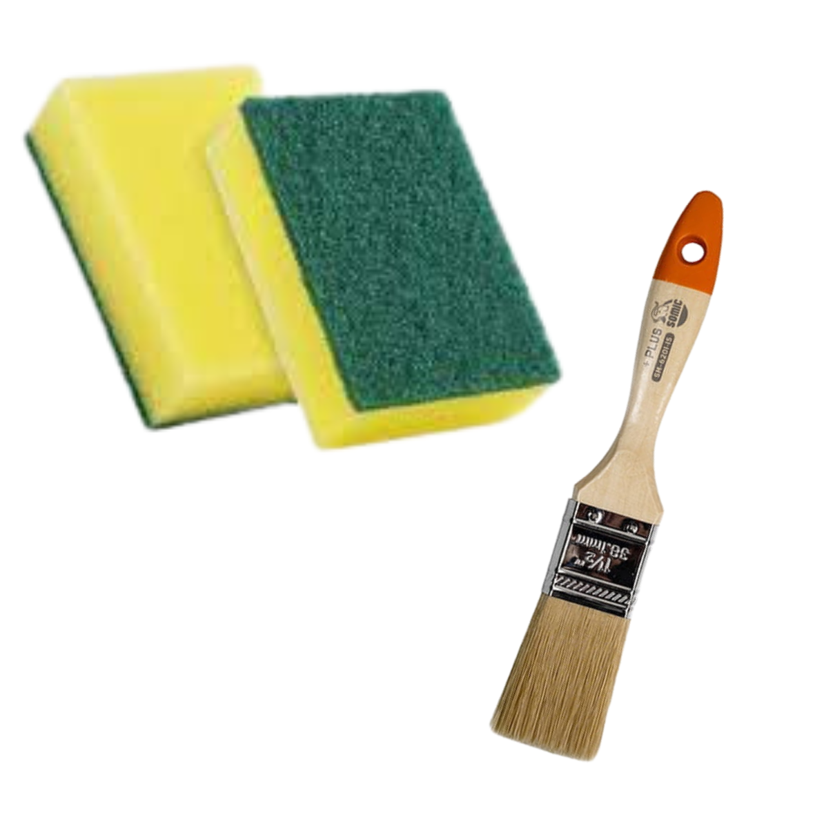 1. ถังไนโตรเจน 2. เกจ์ปรับแรงดัน 3. เกจ์ปรับน้ำยา 4. น้ำยาล้างจาน 5. ฟองน้ำหรือแปรงทาสี
